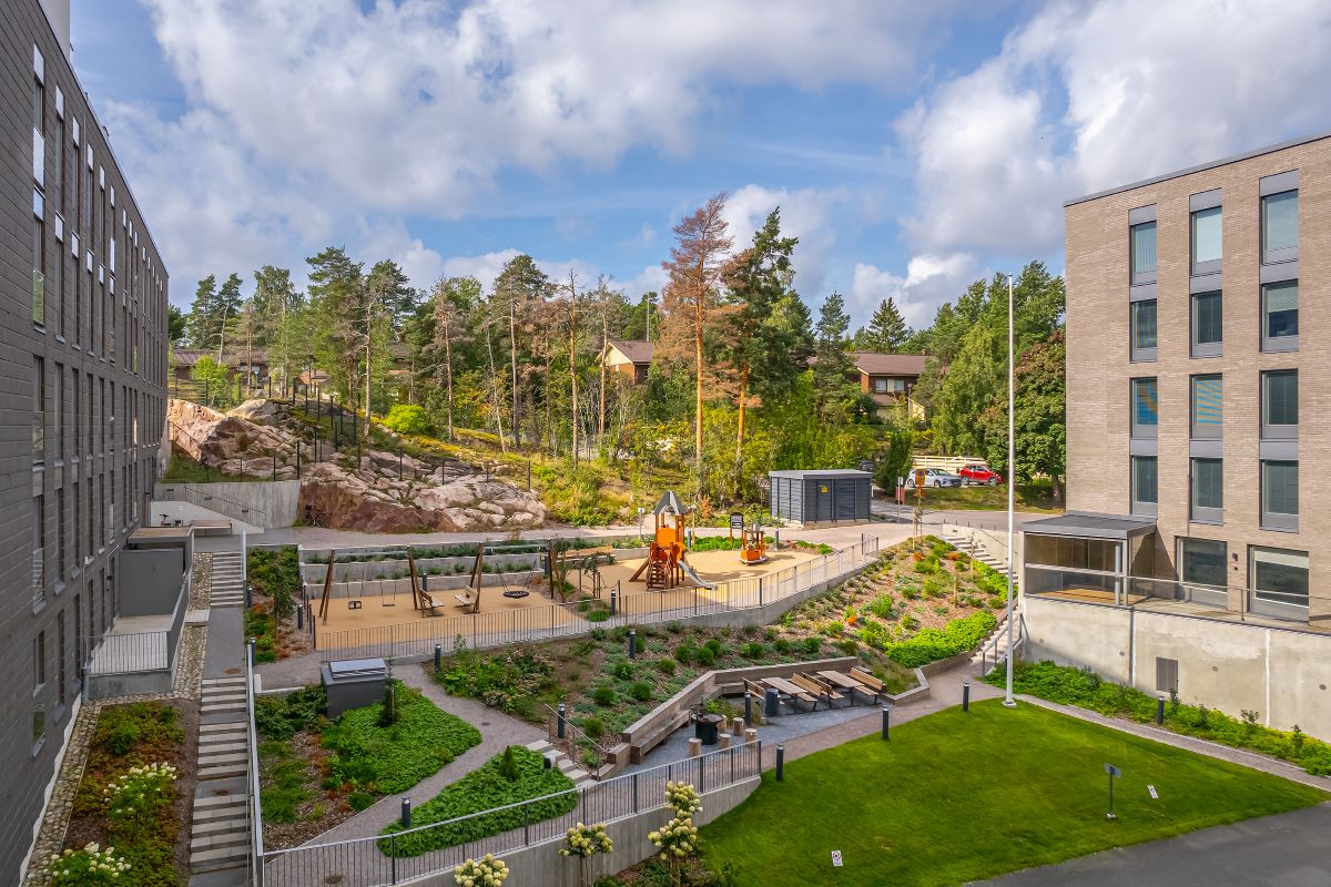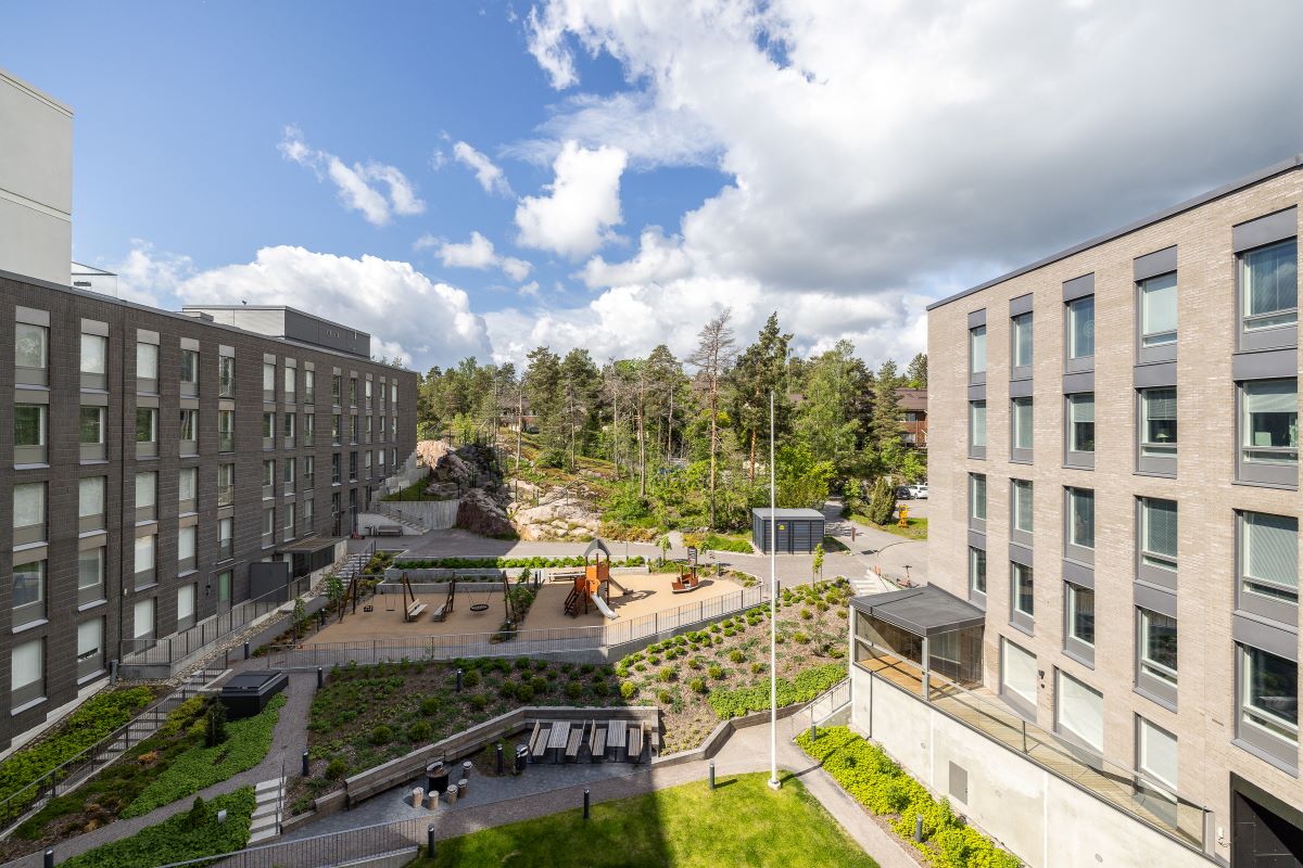 Piispanportin Auran kodit on suunniteltu vastaamaan nykypäivän asumisen toiveita. Tyylikkäät sisustusmateriaalit on valittu huolella, ja jokaisessa asunnossa on parveke- tai terassiratkaisu, joka tuo luonnonvalon ja avaruuden osaksi kotia. Taloyhtiön sisäpihalla voit rentoutua kauniissa viherkeitaassa, joka tarjoaa leikki- ja ulkoilumahdollisuudet sekä tilaa vaikkapa grillijuhlille. Piha-alueen rauhallinen metsänäkymä tuo luonnon aivan kotiovellesi.
