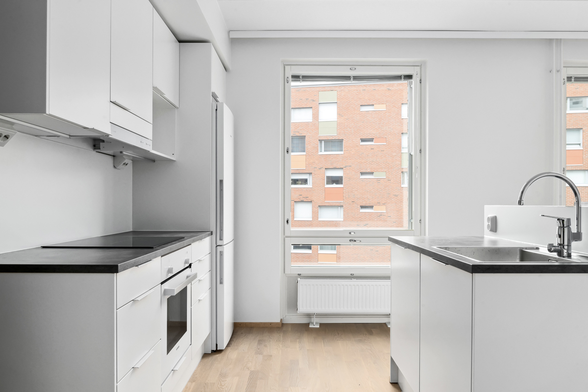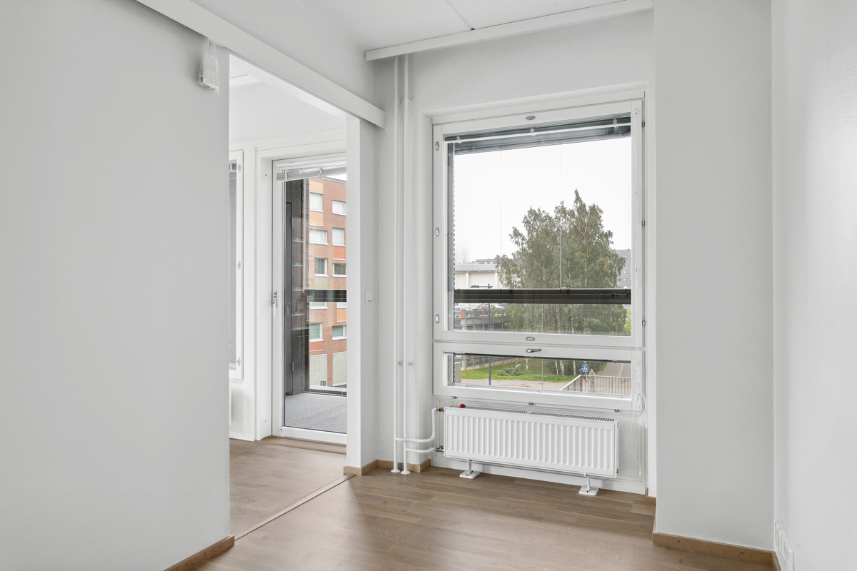Tilava kaksio, jossa on toiminnallinen saareke keittiön ja olohuoneen yhteydessä. Kodin keittiössä ajattoman tyylikkäät valkoiset kaapistot ja lattiamateriaalina on kaunis Tarketin parketti. Makuuhuoneen yhteydessä oleva vaatehuone tuo kaksioon säilytystilaa. Lasitetulla parvekkeella on mukava viettää aikaa jo alkukeväällä. Lisäksi parvekkeella on erillinen varastotila, vaikkapa kausitavaroiden säilytykseen.