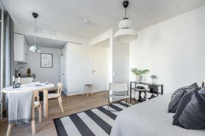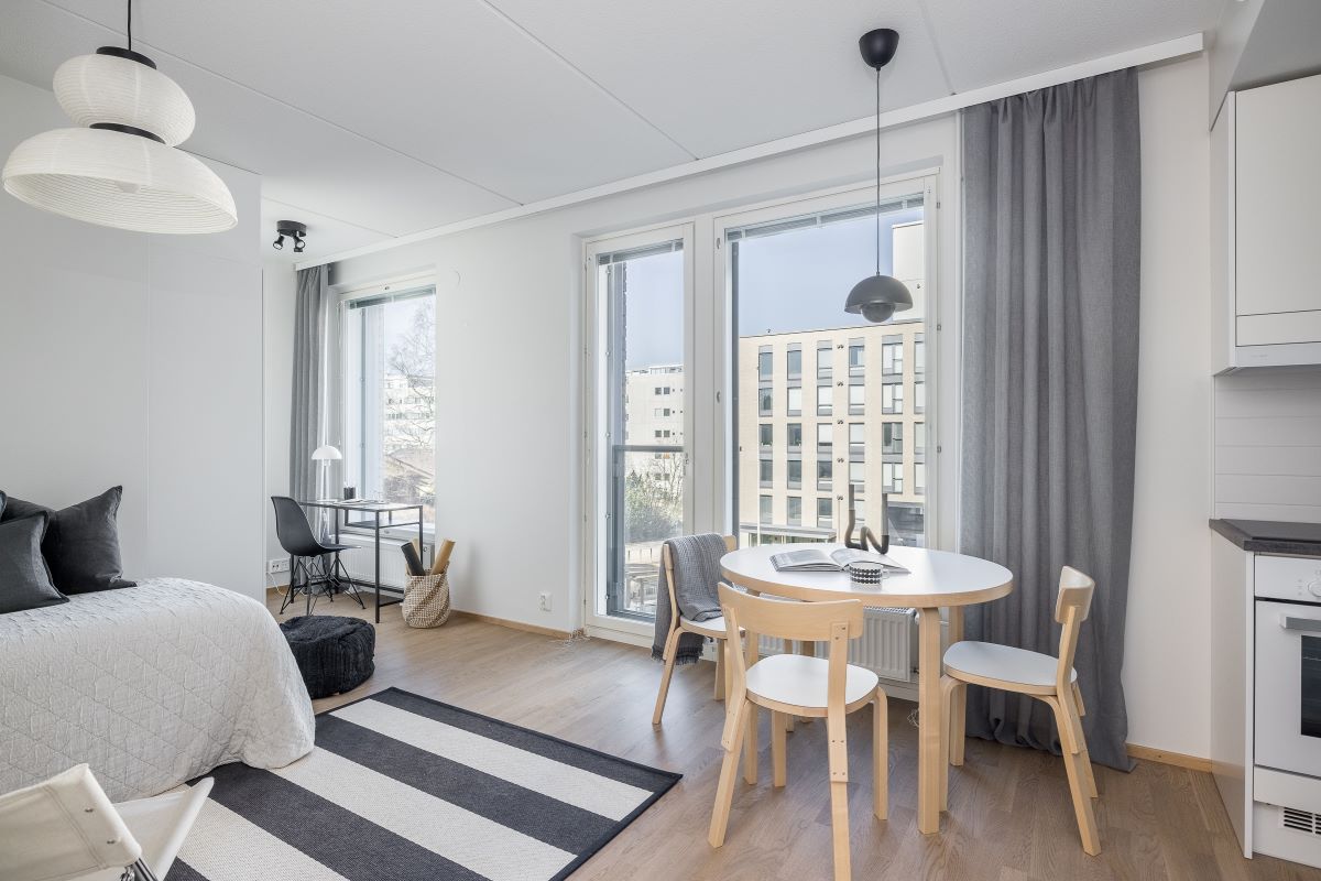 Kodikas yksiö kuudennessa kerroksessa, jossa viihtyisyyttä luo olohuoneen yhteydessä oleva ranskalainen parveke. Kodin keittiössä on aina tyylikkäät valkoiset kaapistot ja harmaa työtaso, asunnon lattiamateriaaliksi on valittu kaunis Tarketin parketti.