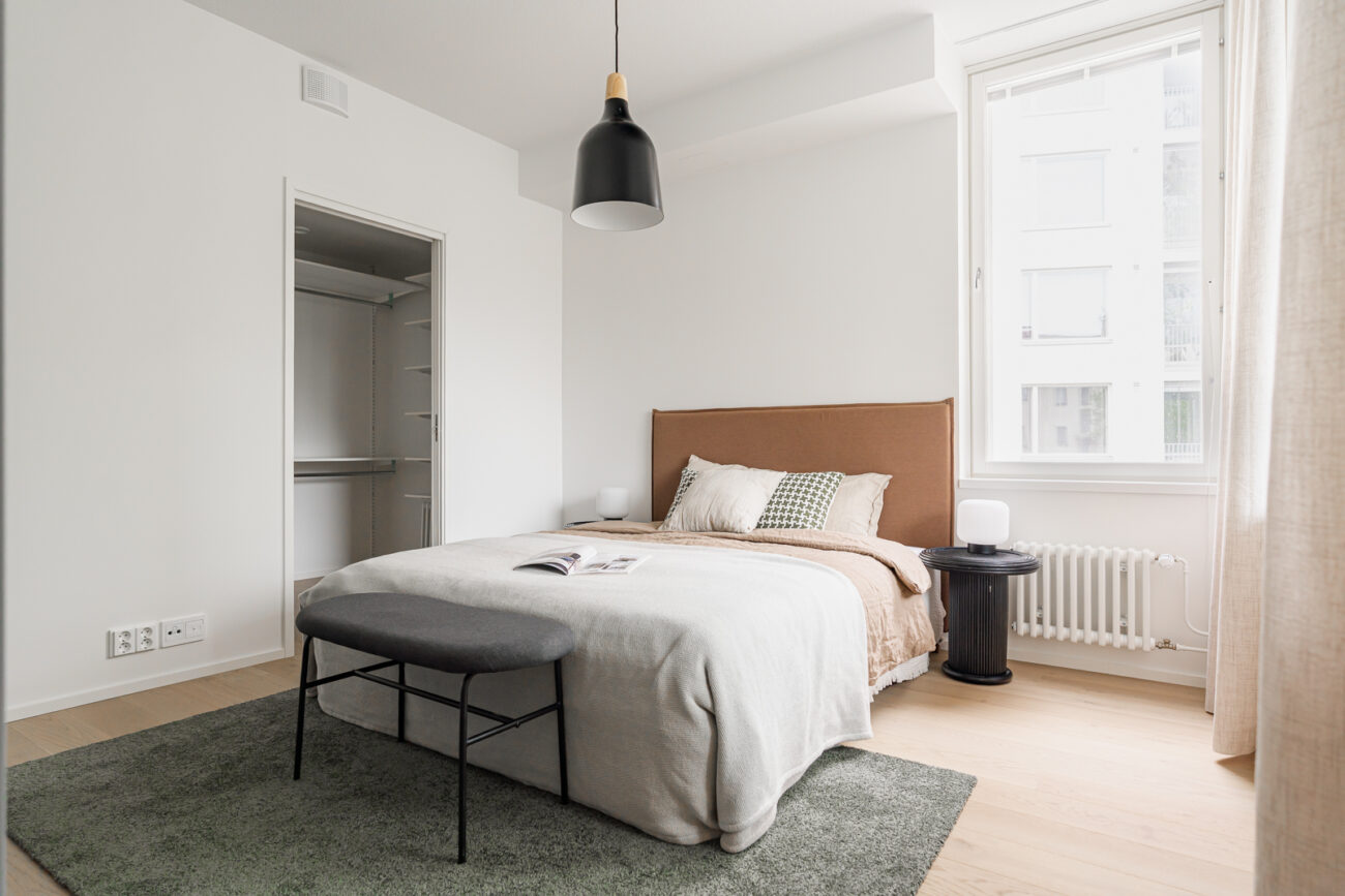 Uusia asuntoja on yhteensä 61, ja asuntokoot vaihtelevat kompakteista 36 m² yksiöistä tilaviin 4–5 huoneen, 128 m² perheasuntoihin. Nämä selkeäpohjaiset ja tilavasti mitoitettuja huoneistoja tulvii luonnonvaloa lähes katon rajaan ulottuvien ikkunoiden ansiosta. Sisustusmateriaalit ovat korkealuokkaisia, ja tarkkaan harkitut yksityiskohdat tekevät asunnoista ainutlaatuisia. Kaikki tämä on tehty Töölön henkeä kunnioittaen, luoden kodin, joka on sekä tyylikäs että ajaton.