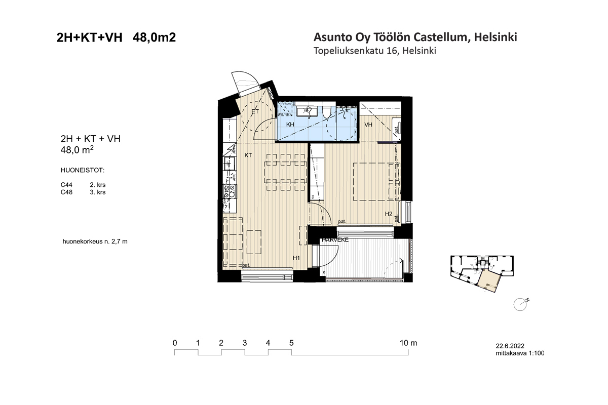 Asunto Oy Töölön Castellum, Helsinki tarjoaa kaupunkiasumista parhaimmillaan, keskeisellä paikalla omalla tontillaan osoitteessa Topeliuksenkatu 16, Taka-Töölössä. Tämä ainutlaatuinen kohde koostuu kolmesta upeasta asuinrakennuksesta: kahdeksankerroksisesta Herttuattaresta sekä sisäpihan neljäkerroksisista Välskäristä ja Paronista, jotka yhdessä muodostavat rauhallisen, vehreän puistopihan. Taloyhtiö sulautuu arkkitehtonisesti saumattomasti Töölön klassiseen kaupunkimaisemaan, luoden ainutlaatuisen ympäristön laadukkaaseen kaupunkiasumiseen.