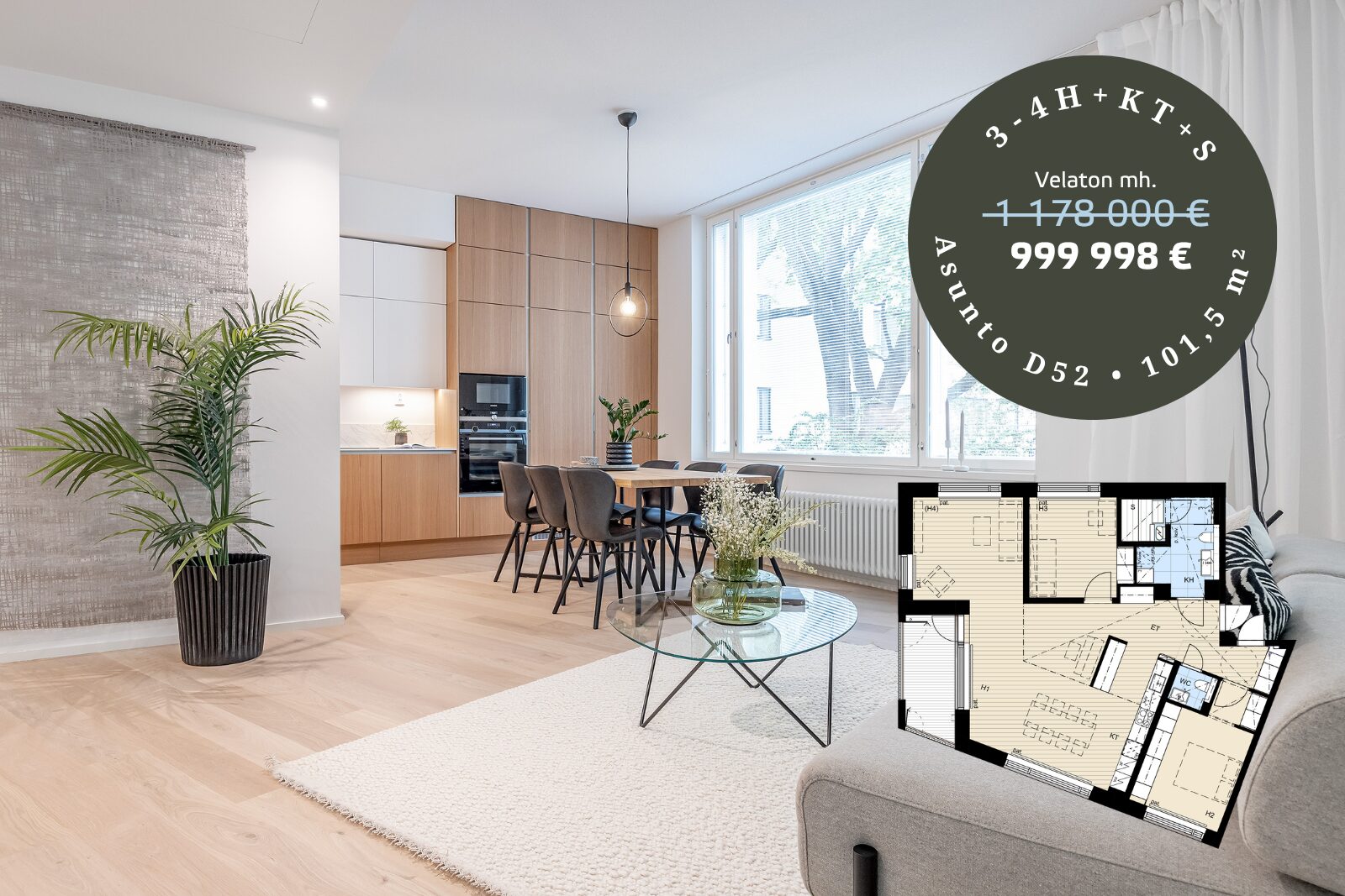 Tämä Taka-Töölön sydämessä sijaitseva upea kulma-asunto ei ole vain koti – se on sijoitus elämänlaatuun ja tulevaisuuteen. Kun ostat nyt, saat enemmän kuin seinät ja neliöt: Saat ajattoman kivitalon, jossa laadukkaat materiaalit, oma sauna, viilennys, kattoon saakka ulottuvat ikkunat ja valoa kolmesta ilmansuunnasta tekevät arjesta juhlaa. Tämä asunto erikoishintaan nyt 999 998 € (norm.1 178 000 €) – osta tänään, nauti loppuelämäsi.