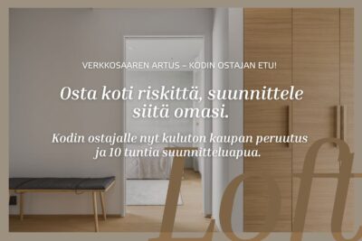 Oma asunto vielä myymättä? Valitse Artus Loft huolettomasti: saat 10 tuntia sisustusapua pohjaratkaisun, keittiön toimivuuden ja valaistuksen hiomiseen – ja kaupan teet kuluttomalla kaupan peruutuksella, joka antaa sinulle mielenrauhan päätöksen hetkellä.