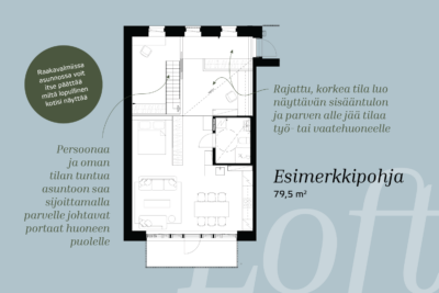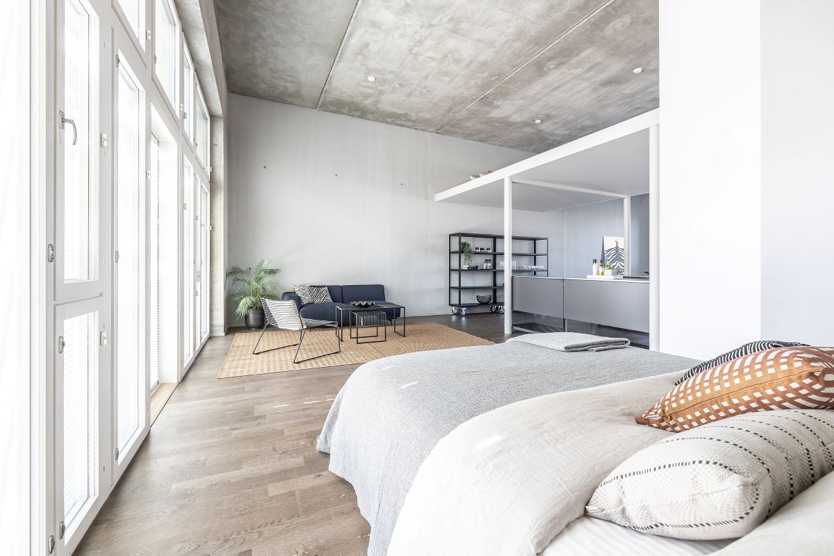 Loft-koti ei ole kompromissi vaan juuri sellainen koti kuin sinä haluat. Huonekorkeus on parhaimmillaan neljä metriä – tämä mahdollistaa kevytrakenteisen nukkumaparviratkaisun, joka lisää asuintilaasi.