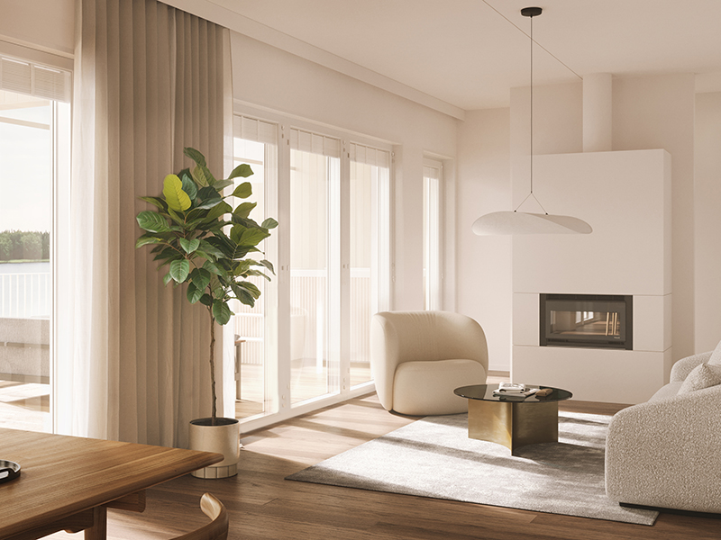 The heating system uses carbon-neutral district heating combined with underfloor heating. The apartments will also be equipped with cooling systems, enhancing comfort for residents.